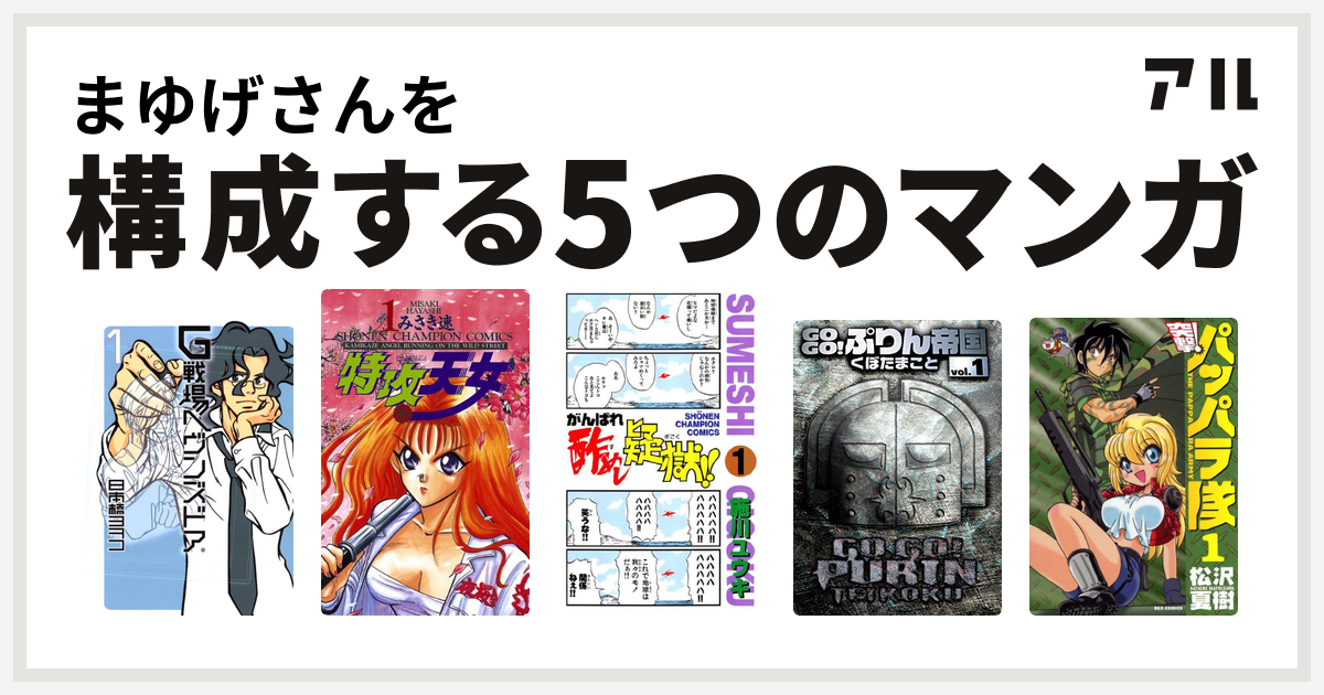 まゆげさんを構成するマンガはg戦場ヘヴンズドア 特攻天女 がんばれ酢めし疑獄 Gogo ぷりん帝国 新装版 突撃 パッパラ隊 私を構成する5つのマンガ アル